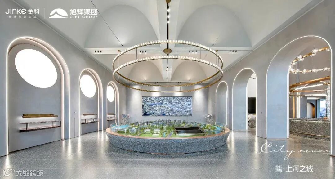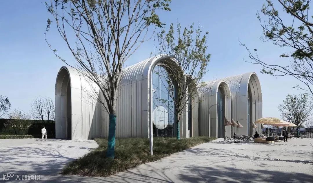示范区景观面积共计约8000平米,售楼处约1500平米。实景展示占地面积约2400平,售楼处设计灵感来自“渔舟错落的停靠在水岸边”的水乡景象,用极简的现代主义手法转译渔舟形象,链接现代与传统。连续的拱券营造一个艺术圣殿,展示未来社区的生活方式……