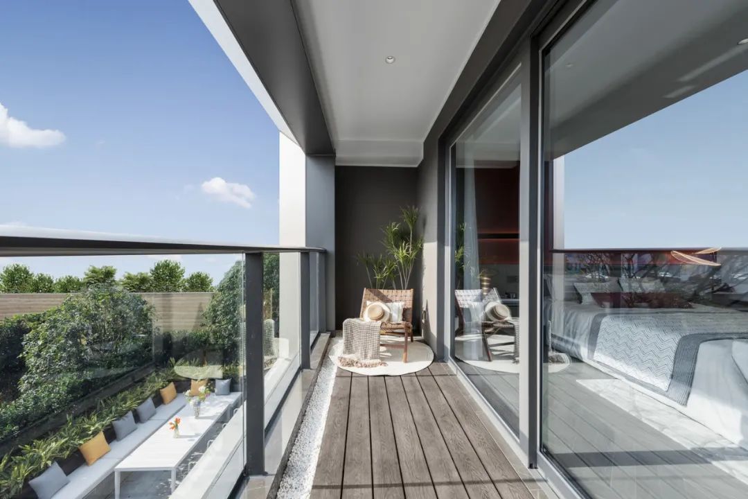 空间设计之上,超越10米的南向宽尺阳台,赏景、闲谈、阳光浴、使居者生活空间恣意延伸,与自然相映成趣!同时可根据需求划分生活晾晒与休闲区域,打造出理想居家生活环境。