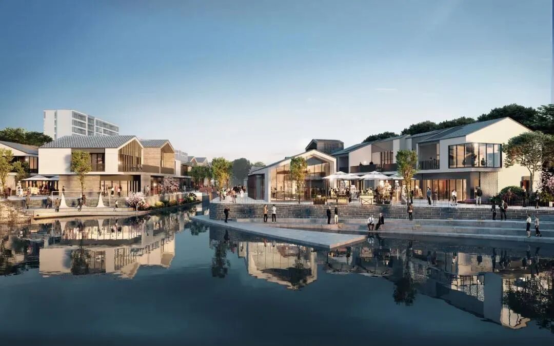 在园林景观上,运用现代设计手法,将绍兴传统水街文化元素融入其中,打造扬帆起航,千帆过境,泛舟而渔民,渔人码头等IP记忆点。
