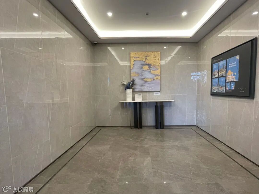 精装设计运用极简的现代的手法,融入抽象山水元素贯穿公区设计,地下归家引导区大块暖灰仿大理石砖背景,是极限成本下的品质归家路。
