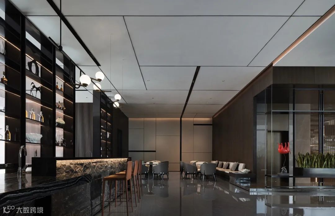 “人是空间里的重要组成部分,因此深度剖析参访者的功能需求、视觉倾向很有必要。基于对建筑造型的解构与提炼,室内设计也以灵活交错的思维来展开。我们合理规划布局,践行克制平衡之道,并赋予其序列感与仪式感,打造出集售楼处、会所于一体的复合型空间,力求营建出更多维度的体验,和与时共进的创新能力。”方磊概述道。