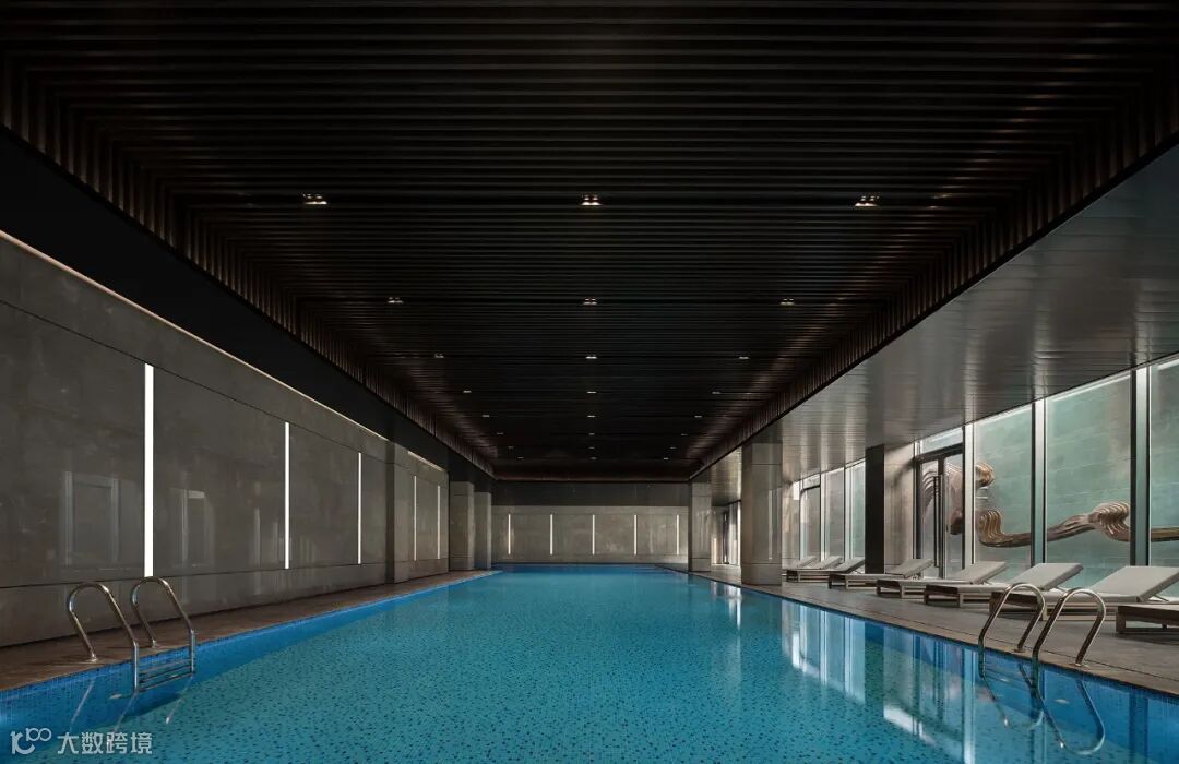 美不只从形体里产生,更重要的是还作用于人的感官、知觉与情感。泳池顶面与立面的灯光排布强调对仗与秩序,并以框景手法打造沉静式观赏区,让人于惬意畅游中,体会纯粹、放松的心境。