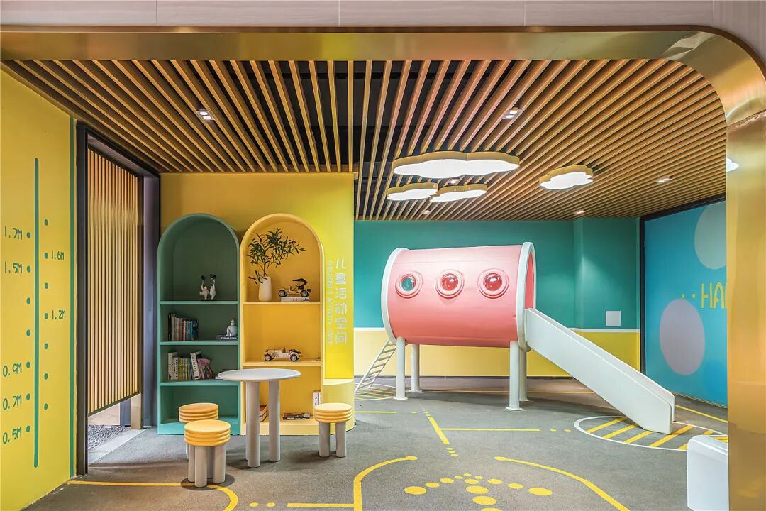 架空层营造了一个富有童趣、能给予人们艺术启发的场景;通过功能分区的方式丰富活动内容,同时运用色彩带来的视觉感受与材质所产生的情感共鸣,调动人的感知力,将人们拉进一个自由幻想的童话世界,让家长和孩子有一个更好的交流互动空间,让时光默默的记载着难忘的温馨时刻,亲情、友情、处处皆温暖。