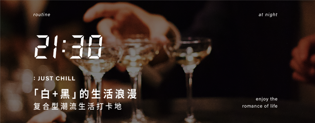 “白天有精神加持的咖啡香,夜晚有慰藉灵魂的鸡尾酒”,“白+黑”的浪漫组合让空间的美学呈现有了更多的感官组合。