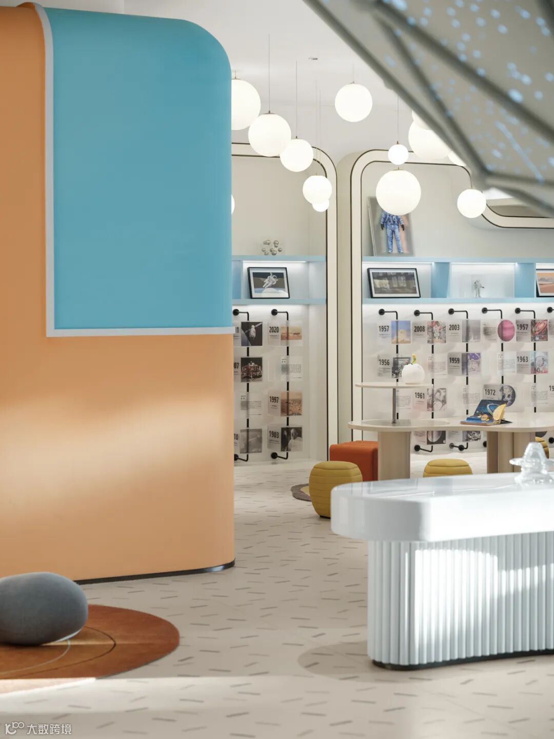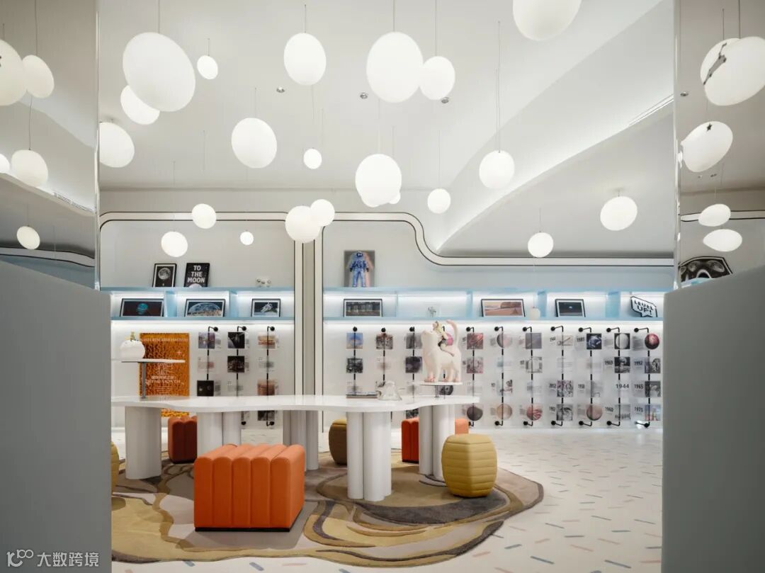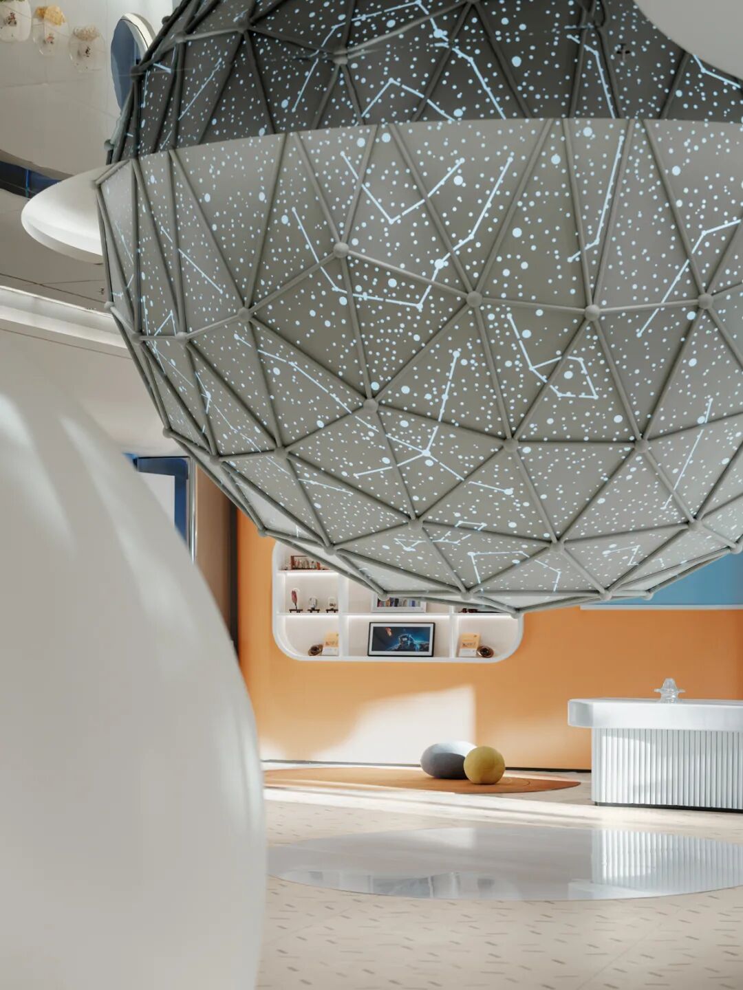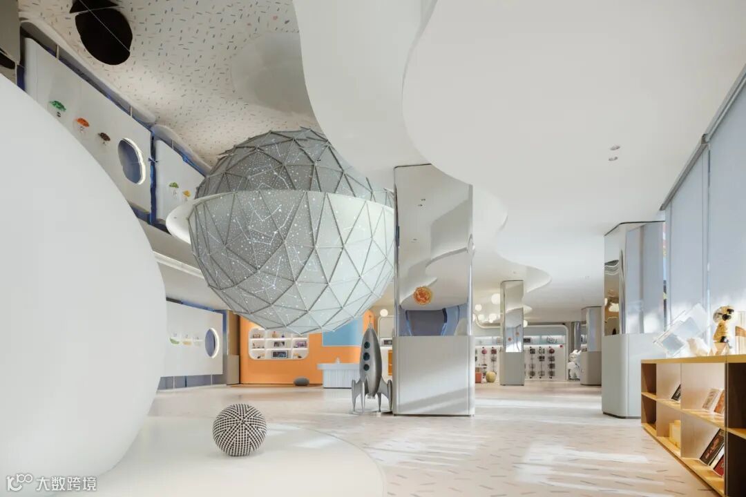 “人的想象力漫无边际,而宇宙之大甚至超越了想象”, 在南京深厚的文化底蕴之下,峻佳设计将城市文化基因与融创社区活力相融合,针对消费场景的开放与多元,突破固有规则的桎梏,以多边形星球装置作为空间视觉记忆点,精心规划空间的探索动线,提供了一个能深度沟通、展览创作的共享平台。