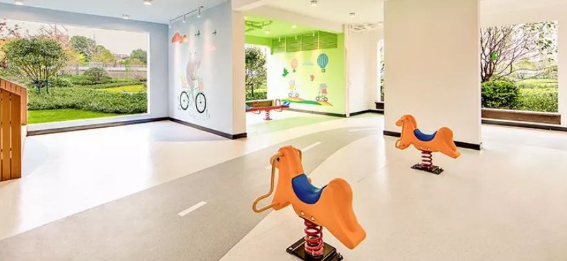 绿城桃李春风,面积约2000㎡的架空层,分布了至少15个主题架空层,层高3.3米,