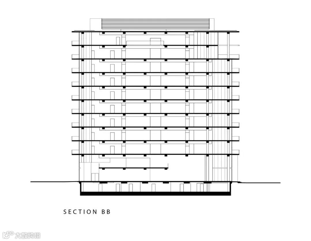 灵活的室内楼板容纳开放的规划或多达10个封闭的办公室沿北墙。极简主义的室内设计使建筑成本非常低。