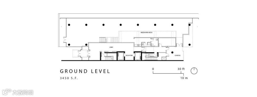18个地下停车场可以通过隔壁的公寓停车场进入,消除了地面上破坏性坡道的需要。