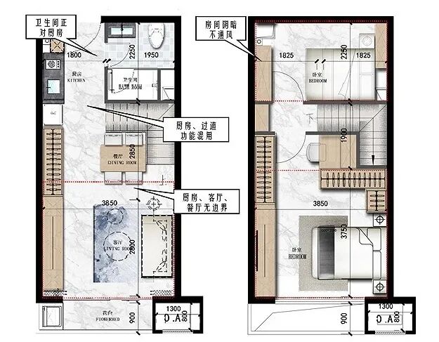 大开间,餐厅客厅厨房功能交叉,生活没有私密感、品质感……
