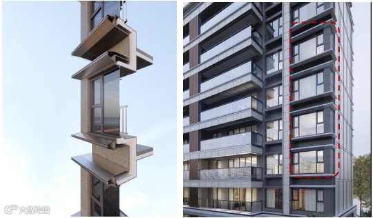阳台外立面使用金属线条,突出阳台细部的建筑构造与工艺技术。玻璃栏板及扶手造型精心设计,每一处的构思,都传达出精工雕琢的工匠精神。