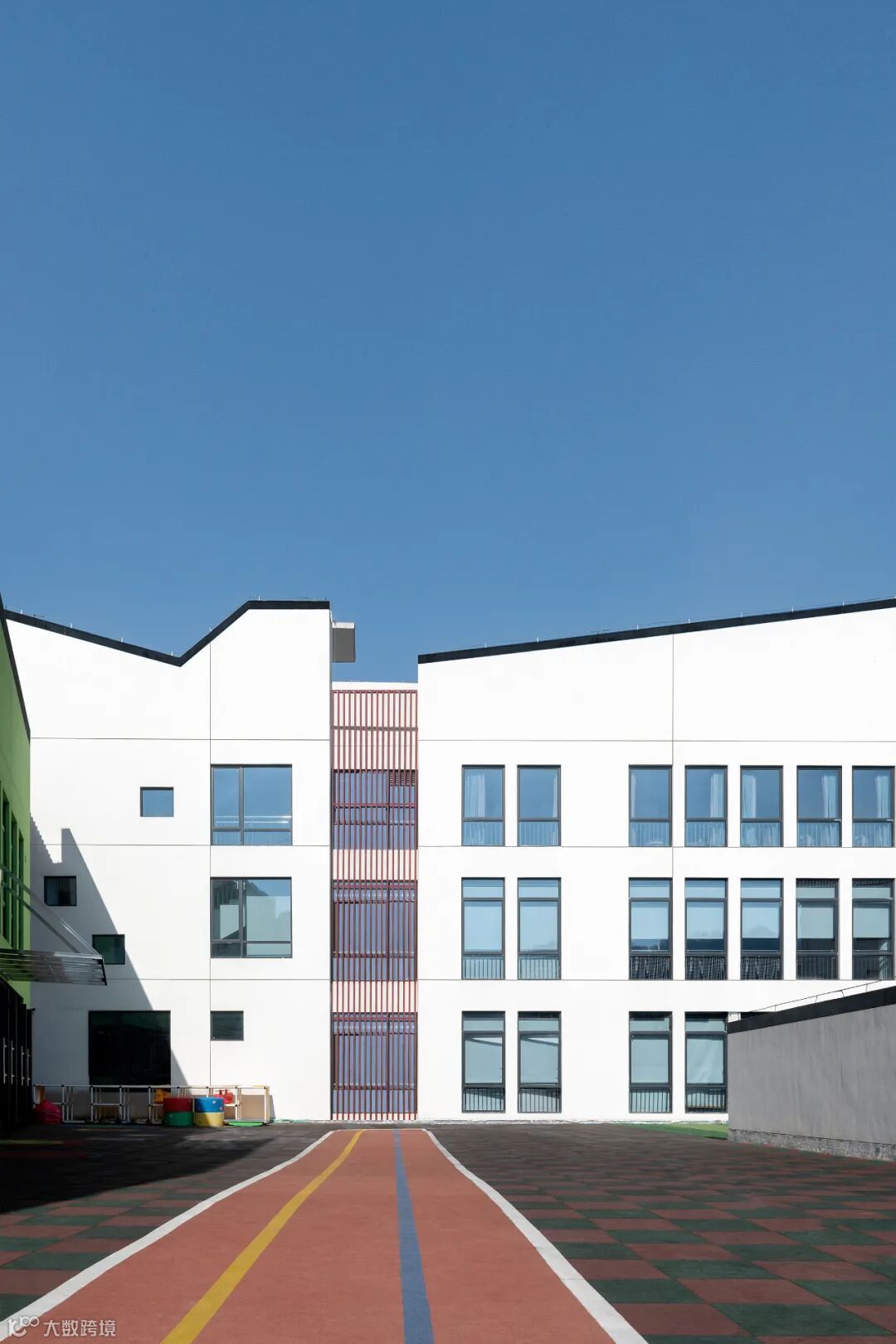 设计伊始,建筑师就明确了初衷与核心:创建具有清晰线条和可识别元素的建筑,力图将园所建筑与杜门村的现有环境相协调;通过丰富多样的活动空间为孩子们营造出欢乐运动的学习生活环境,赋予东塘幼儿园一个儿童友好且可持续的形象。