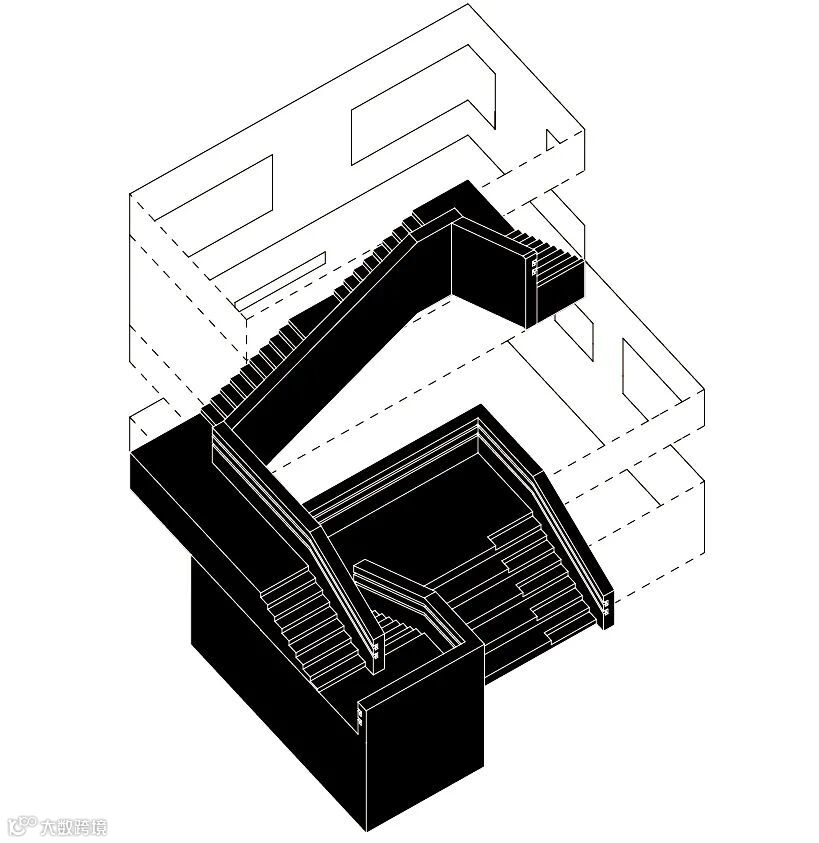 “露”的手法一则是将室外活动场地放置在阳光最充足的南侧;二则是设置架空空间,架空不仅丰富建筑立面,而且对于活动空间的开放有积极的影响。设计采用首层局部架空缩短进入主空间的路径长度,使得内部场地与户外景观相连,营造一个流动的半户外空间叙事,连接艺术与自然、融合驿动与宁静。