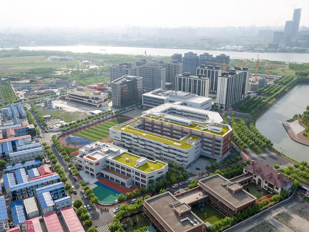 主要教学区顶层采用了富有文化气息的坡顶建筑形式。坡屋顶在利用自身造型有效阻隔高架噪声、保证核心教学区安静的同时,也创造了优美的第五立面,使市民在高架及周边高层建筑上依然能感受到富有特色的校园形象。