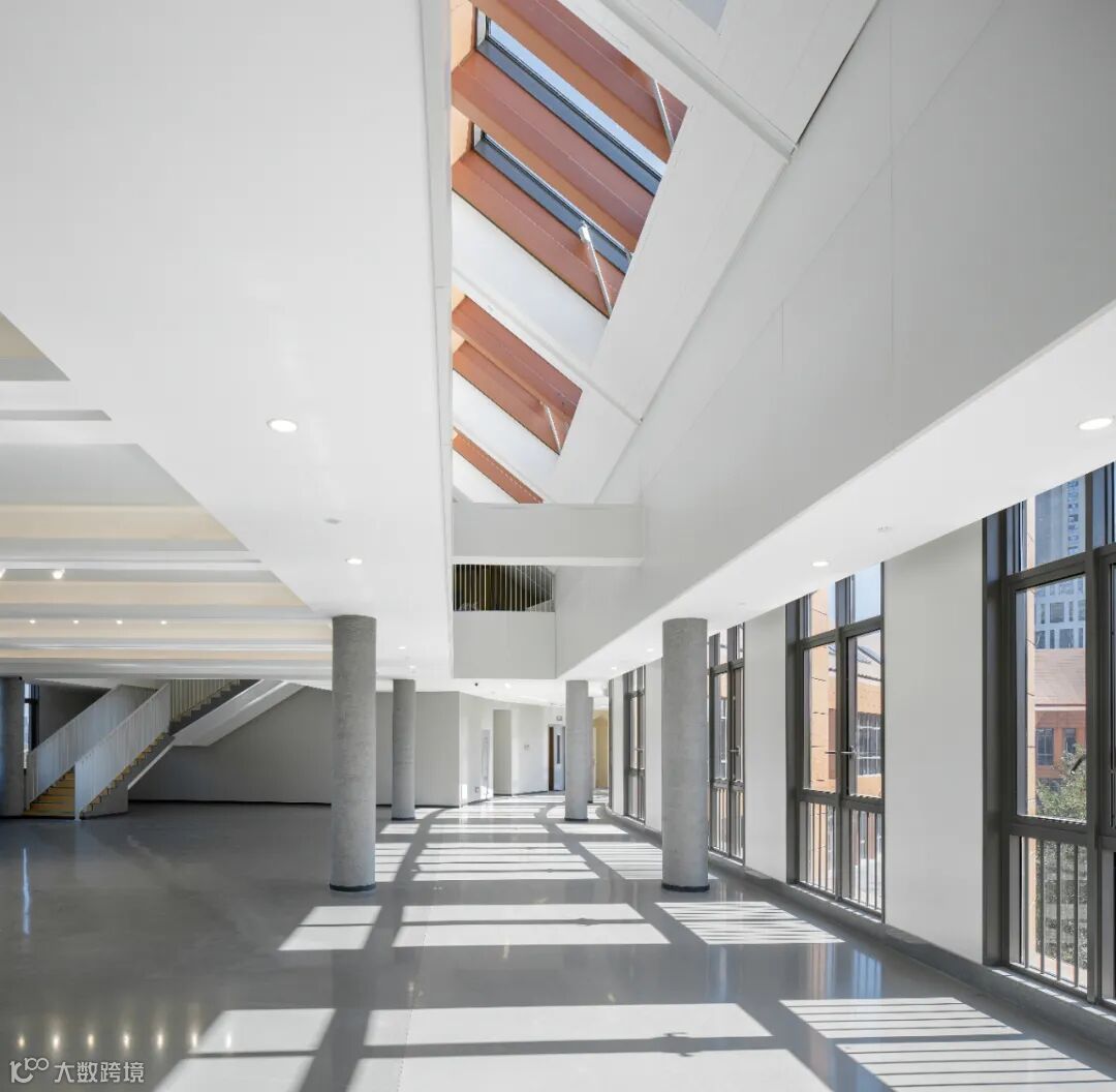 放大走廊取代了传统功能单一的走廊,使得走廊复合交通、学习、交谈、储物和信息展示等多种功能。