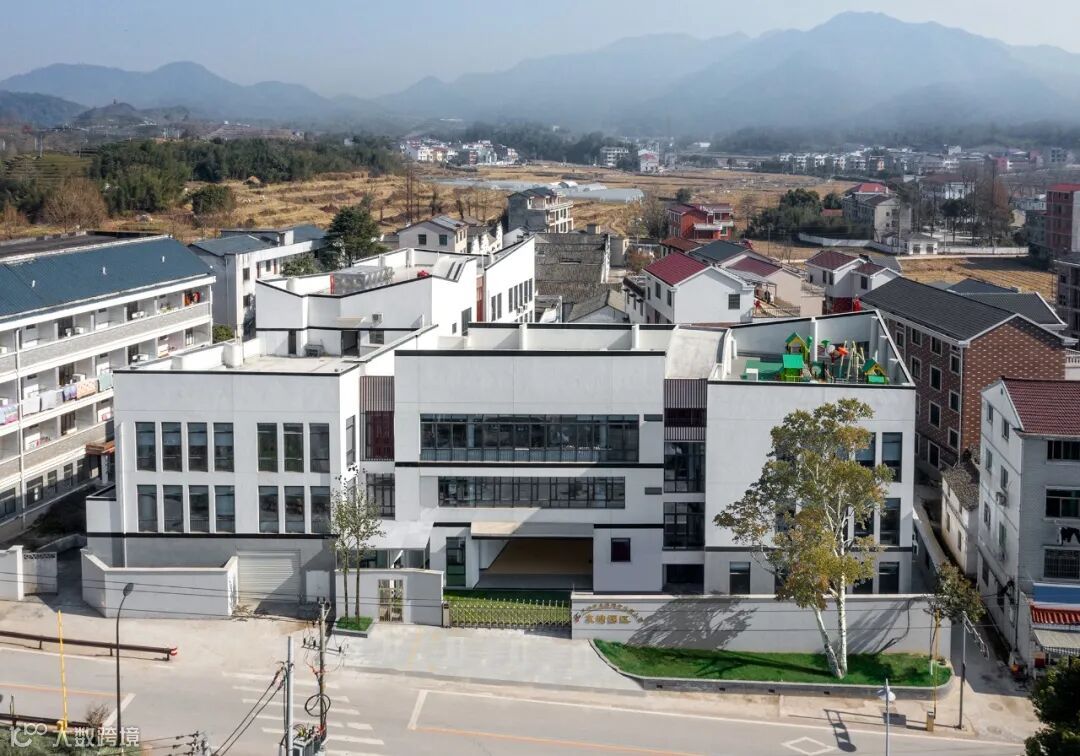 以朴素简洁的外立面建筑为背景,加上奔跑玩耍的孩子们组成一幅充满童趣的画面,融合周边环境,点亮村落活力。