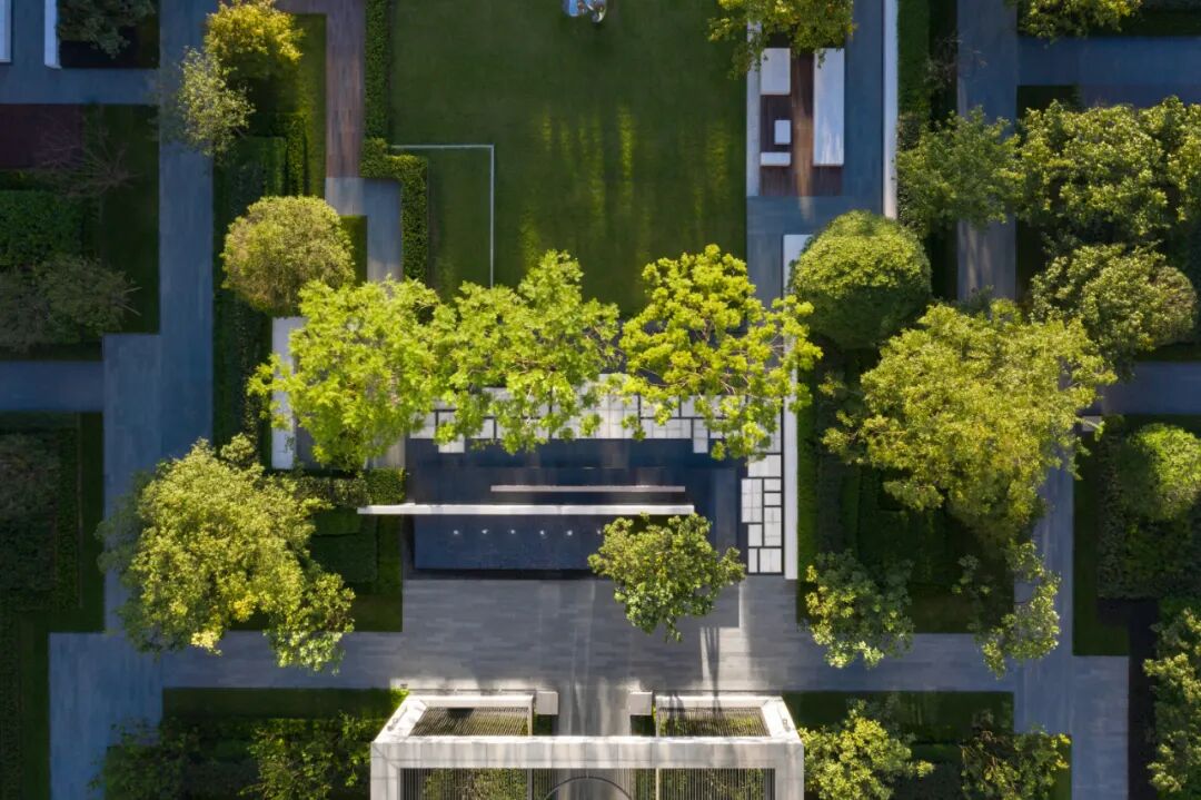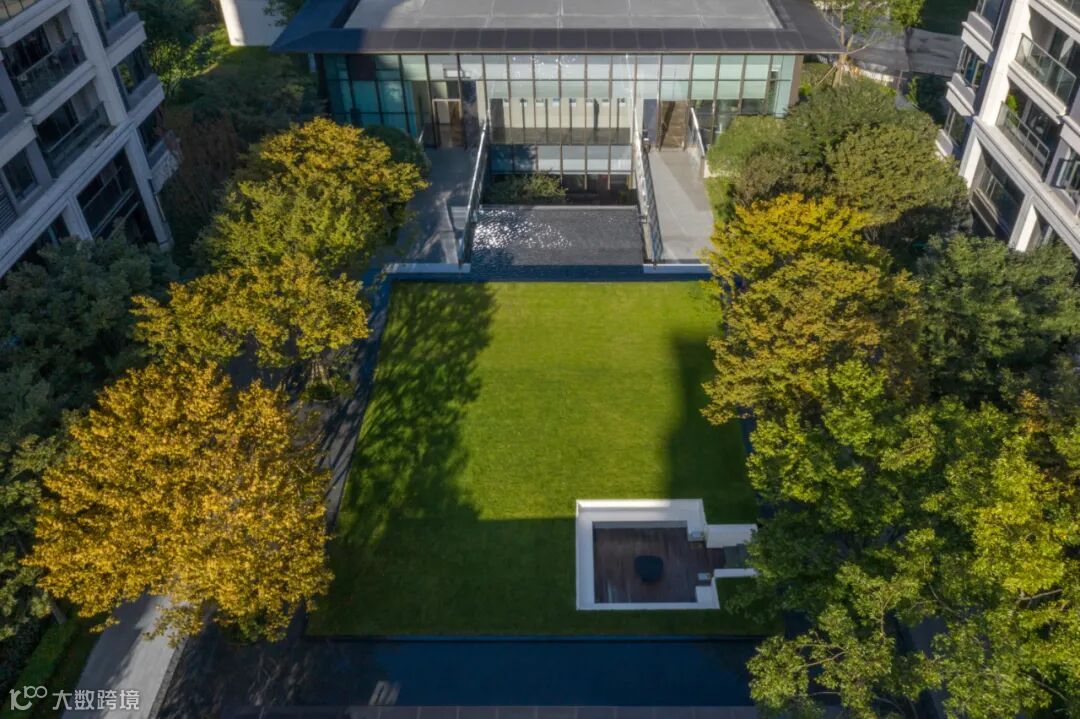 特选的榉树安静矗立在开敞的草坪空间上,远处的下沉式会客厅可以举行聚会、看书、休闲等一系列活动,社交与休憩都可以在这里进行。阳光合着树影,清风吹过,仿佛在歌唱一般;自然的鸣叫、秋日的光影、植物的清香,舒润着听觉、视觉、嗅觉,带给人多维度的立体园林体验。