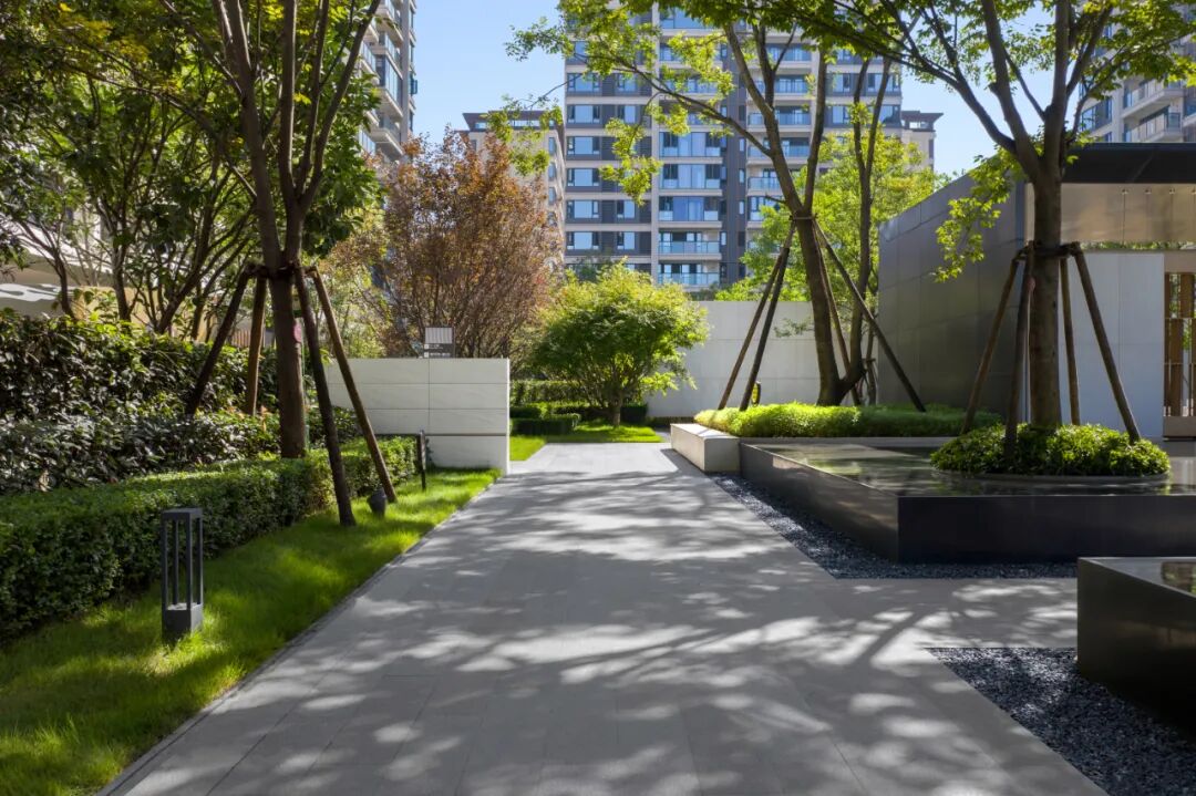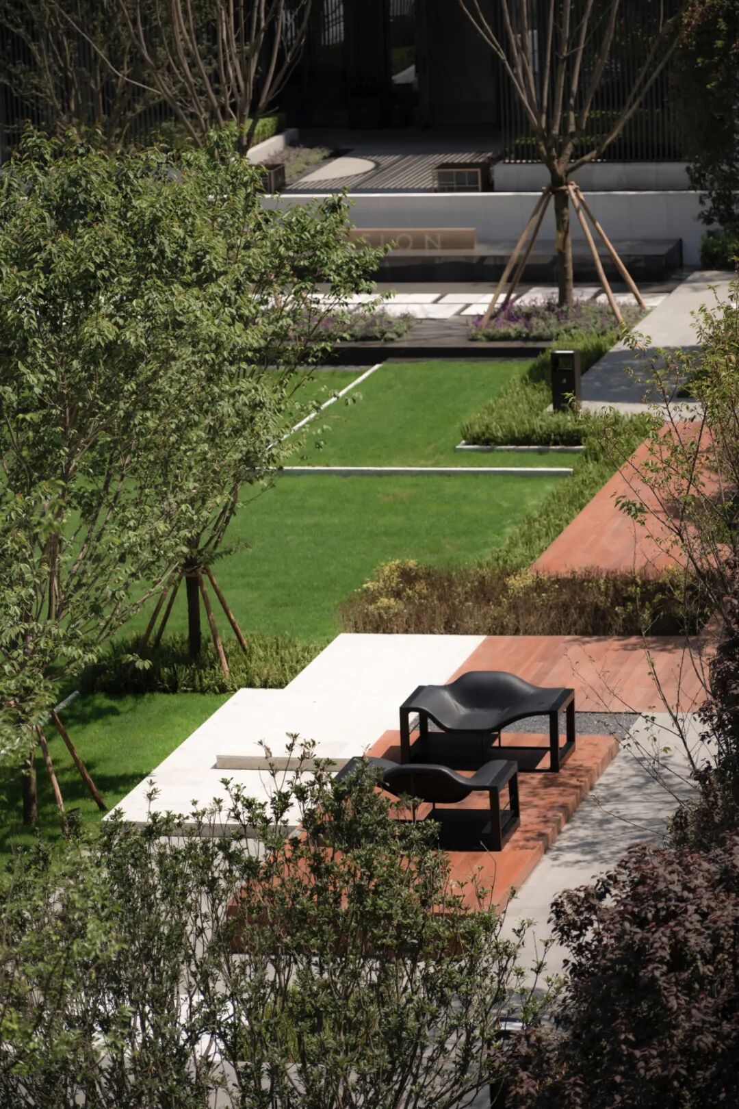 庭院也不是“只可远观”的摆设,座椅踏步设置在步道左右,可玩可停,细腻体贴地考虑到了您在园区的每一个活动可能。