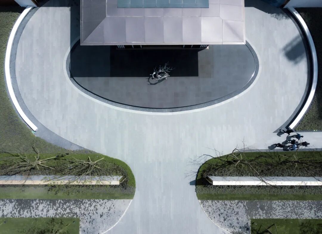 庭院两侧设计了不同高差的树池,运用错落的视觉感受营造空间的宁静幽深。身处下沉庭院,也是换个角度看生活。