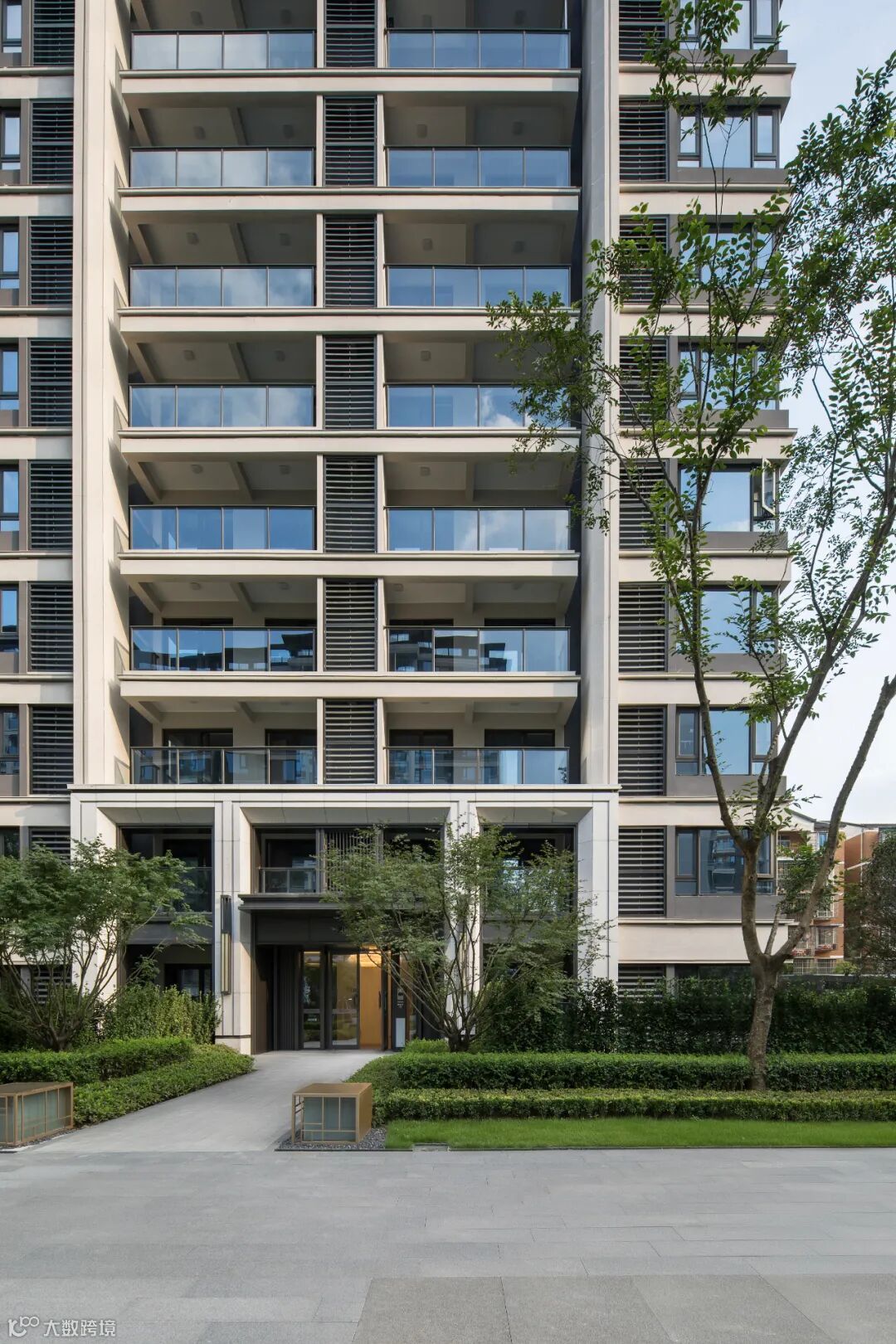 整体颜色不同于常规项目的暖黄咖色,而选用了降低明度的暖灰和相对更加洁白的真石漆,让立面色彩更加轻盈舒适,没有了厚重的压迫感,同时也更容易衬托出园林植物的生机盎然;整齐的立面,一方面体现着礼序的正气,另一方面也凸显着精致简约的生活哲学。