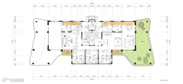 这个户型室内面积921㎡,仅阳台面积就113㎡