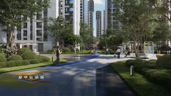户外设置健康跑道、亲子活动场地、小球类场地、康体活动场地等,满足全龄业主的户外活动需求。