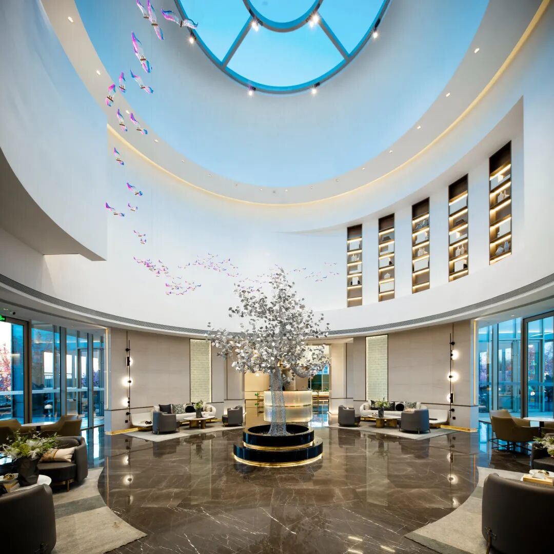 和光尘樾展示区跳出了“仅服务于销售功能,与客户交付体验无联系”的传统展示区打造方式,将主大门提前亮相,同时售楼处后期会作为永久归家大堂使用,让客户所见即所得。