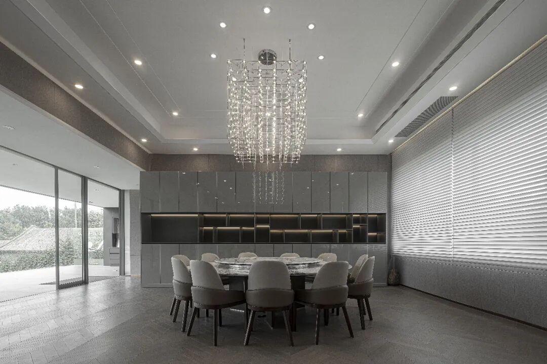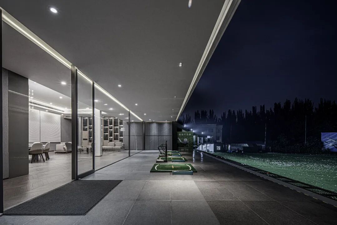 高尔夫俱乐部在提升原有使用的空间功能、灯光照明的氛围调性以外,规划新增了储存空间、厨房、雪茄房、会客室等其他功能;其二层VIP练习室通过整块超大规格尺寸的三层LOW-E超白全景落地窗,让使用者可以室内无距离感受户外球场的体验。