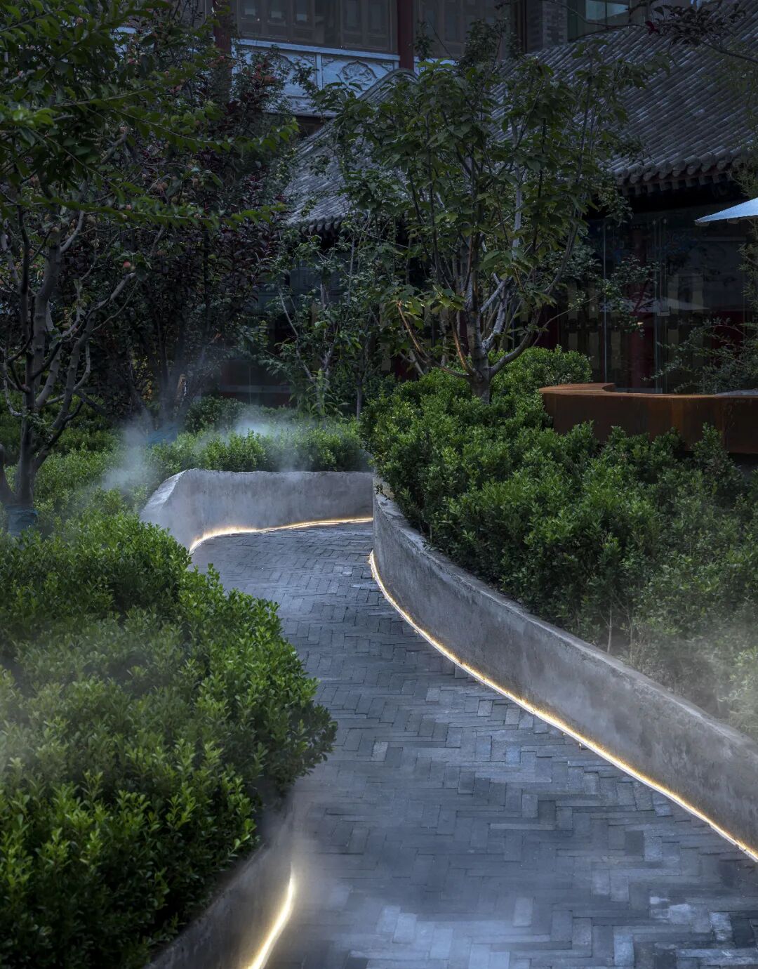 ▲庭院设计借用水一样的曲线柔化方正秩序规律的传统建筑©钟永刚