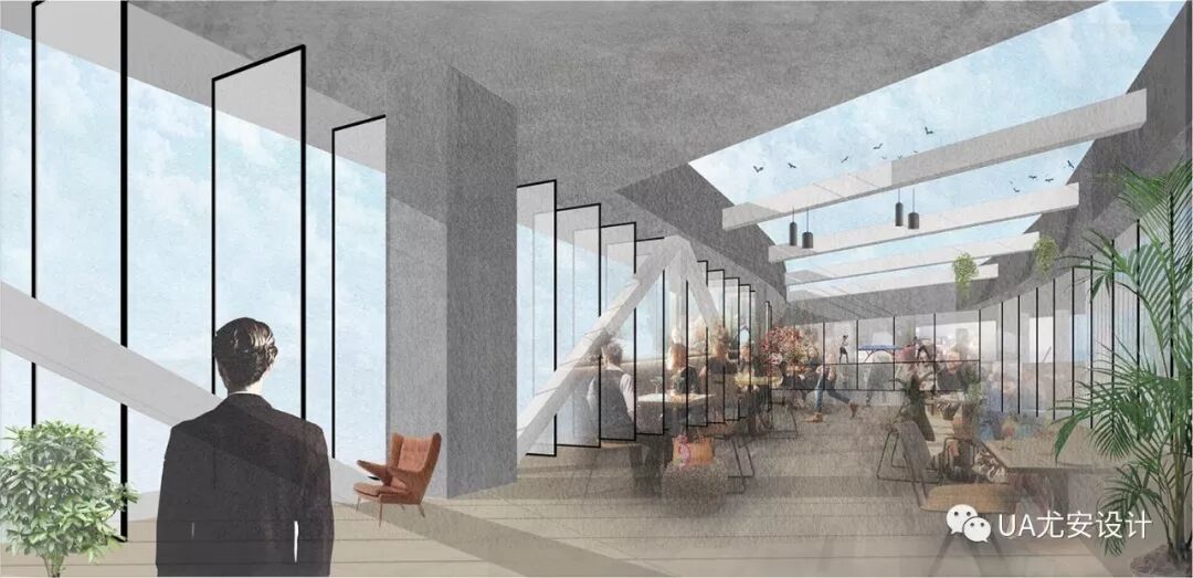 顶部酒廊 整体南北通透,拥有较好的城市景观视野。