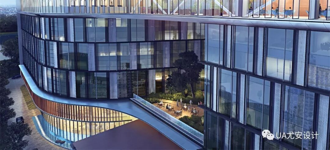 露台空间 合理利用,形成酒店的空中花园和休息平台,打造餐厅外摆区域,带来生机和活力。
