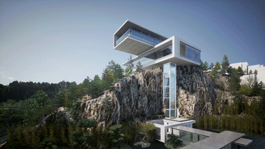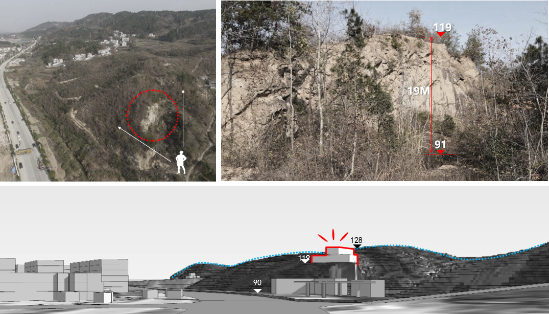 但如果将艺术馆放在岩壁高处呢?不仅保留了原始的自然条件,还可以借助地势,加强建筑的昭示性。