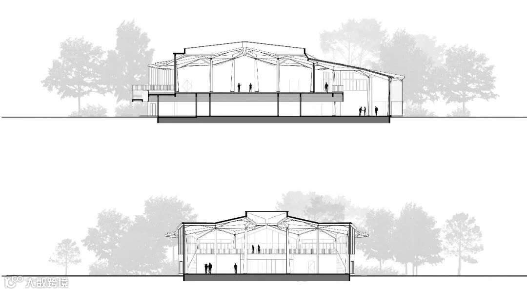 木结构是一种非常“诚实”的结构形式——结构本身即为装饰。木材梁柱、连接节点与钢结构辅助构件都能够完整地呈现出来,使得五边形花瓣这一最初的设计线索在最后建成的建筑当中,依然能够得到清晰的展现。