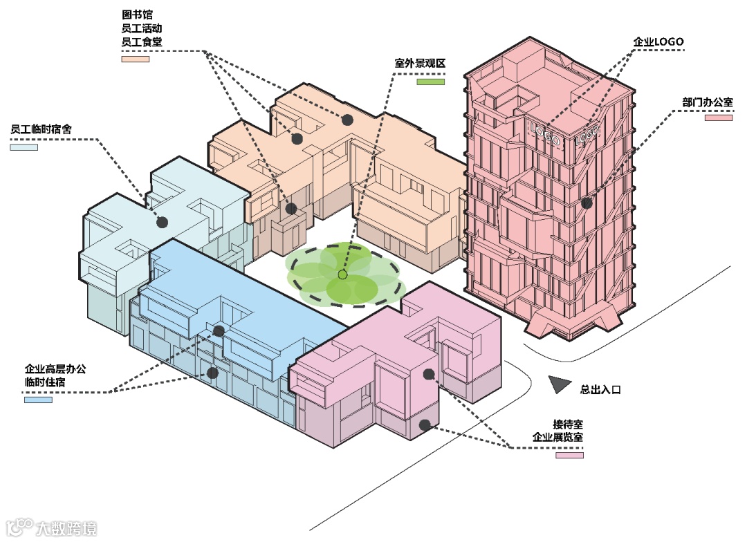 ▲筑弧为西亚斯科技园设定功能丰富的竖向叠加