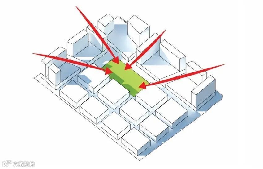 其次在整体项目中,我们植入中央公园绿地,为整个城市注入一个能够呼吸的绿肺;