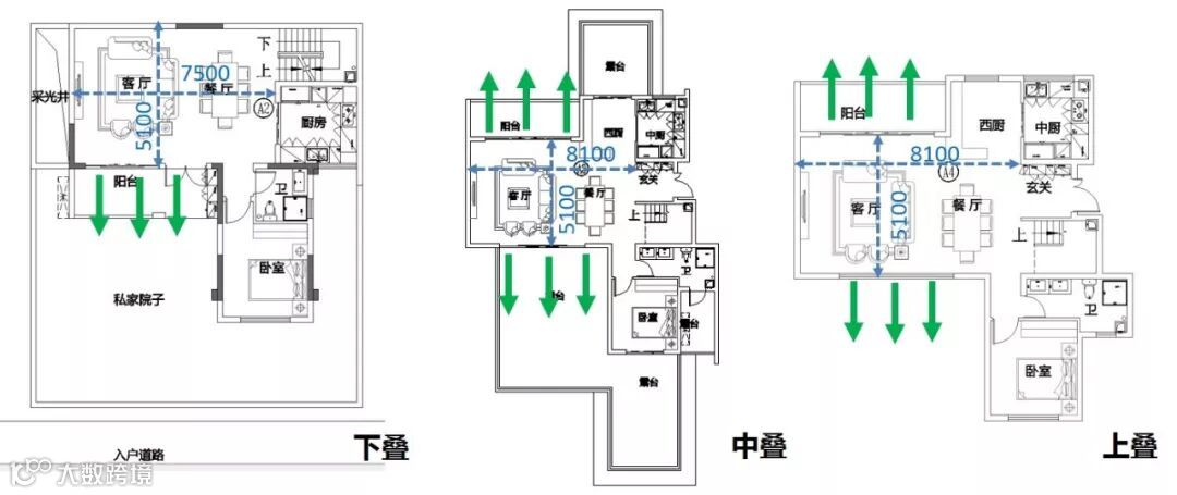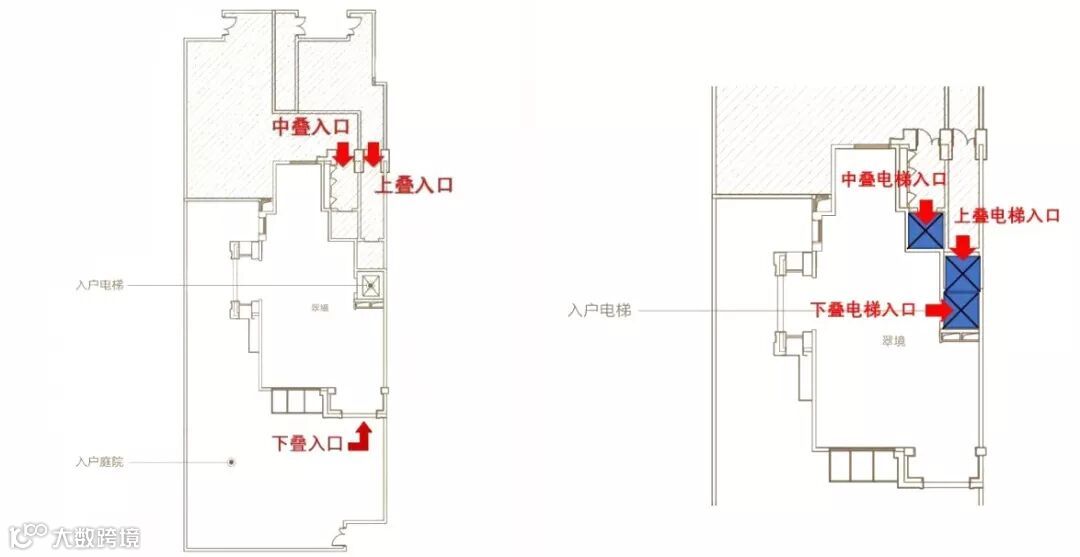 依山叠墅分流式入户示意图