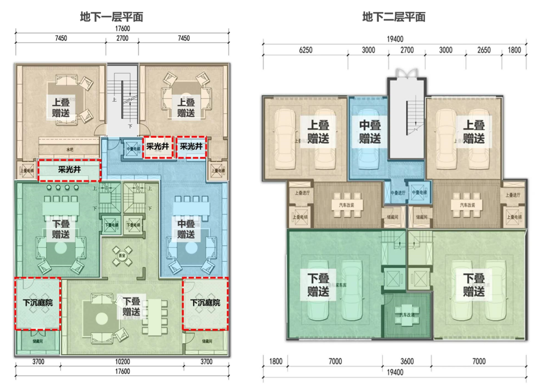 例如,云翔国际研发的5墅产品,实现了上中下叠均赠送两层地下空间。地下一层5户个性定制,价值均好分配,天井及下沉庭院、阳光引入。地下二层私家地库,独立电梯入户。