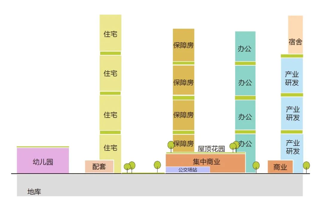 业态:超高层办公、超高层住宅、集中商业、公共配套