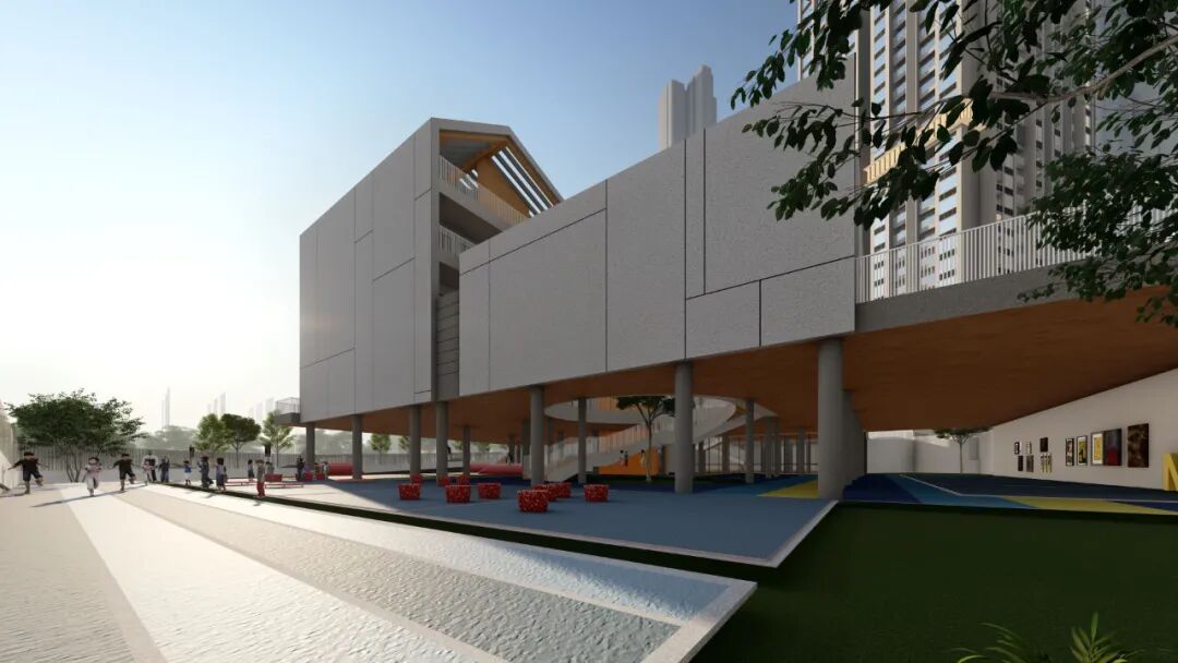 同时获得比较完整的活动场地,底层架空,形成一个风雨操场,作为活动场地的延伸,同时防止高空坠落,提升安全性。