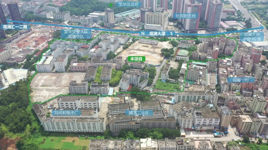 项目位于观澜大道旁,距离茜坑站500米辐射范围内,区位公共交通体系发达,但内部道路缺乏;周边环境具有成熟的城市街区,人文及自然要素丰富;项目东/北侧为住宅项目,西/南侧为旧村、工业,城市品质亟待提升。