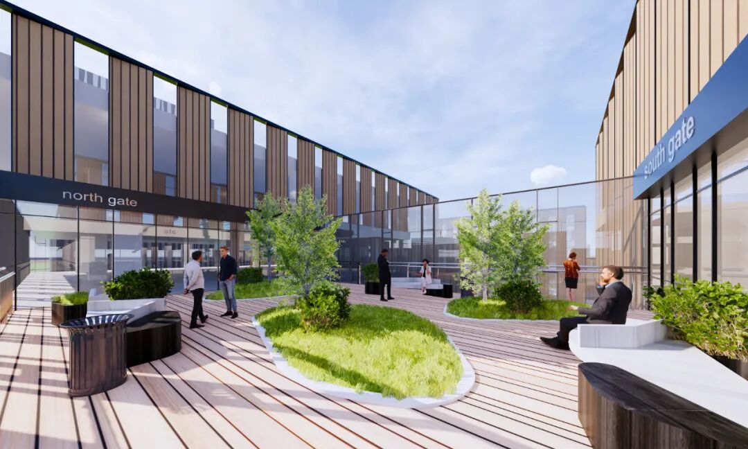 位于底层商业的屋顶花园中的文体休闲中心和户外餐吧,促进人与人之间的“创新可见”的交流合作,也是新生活方式的承载体。