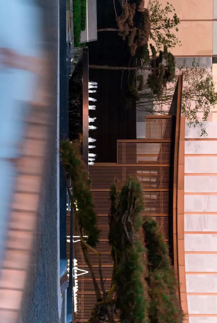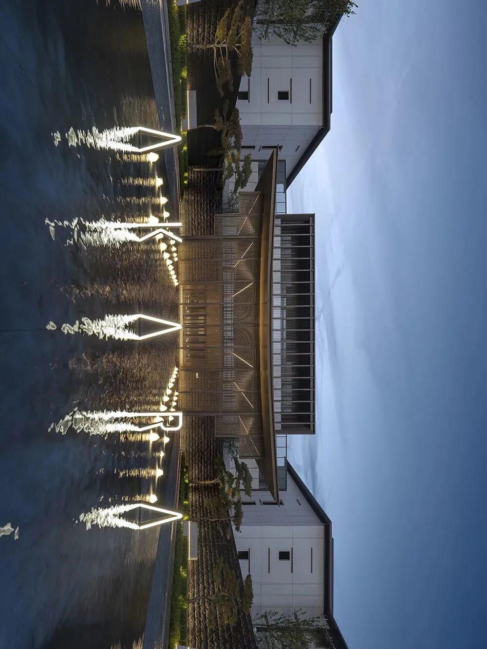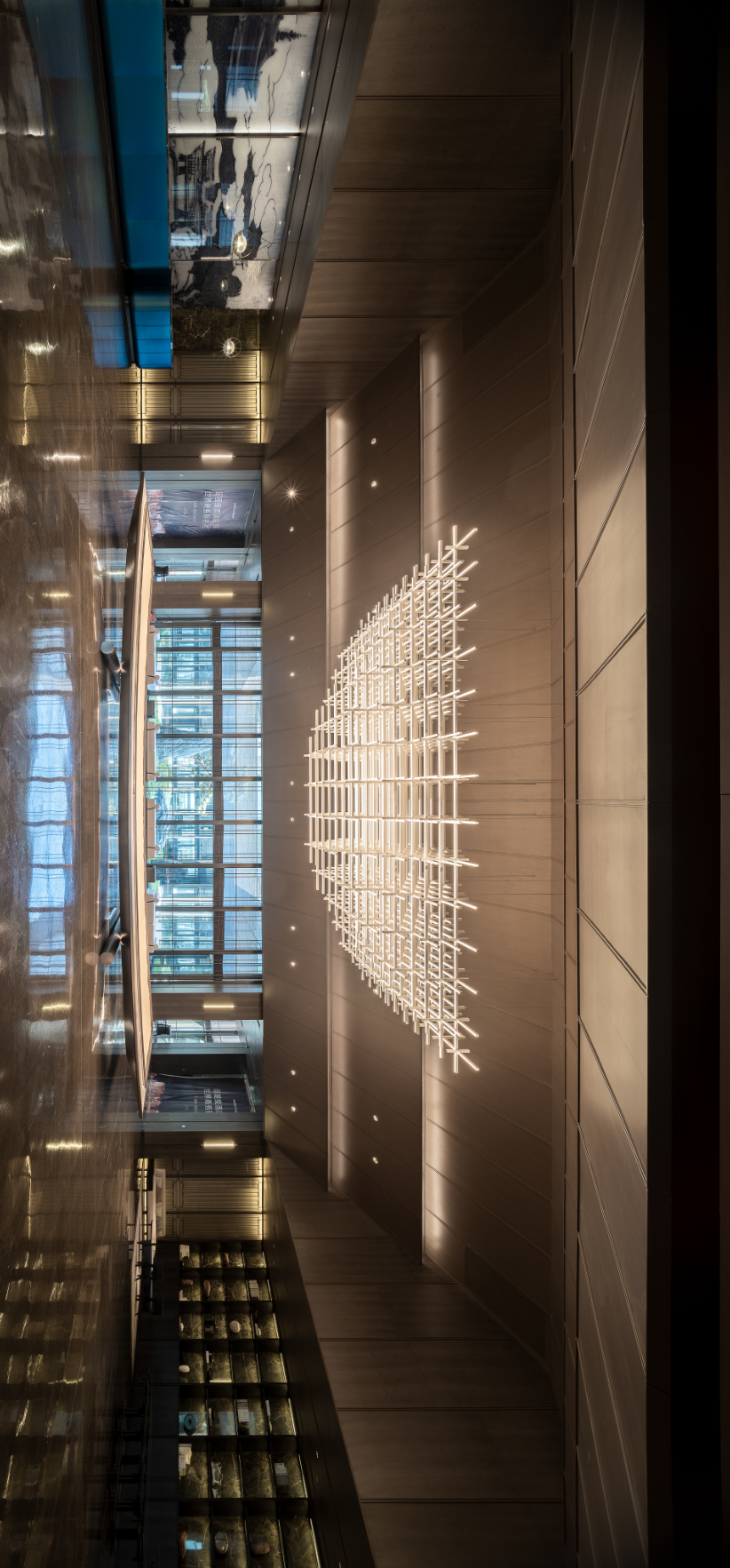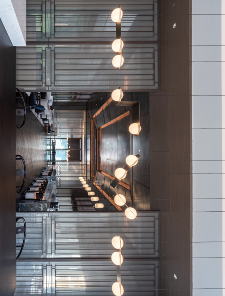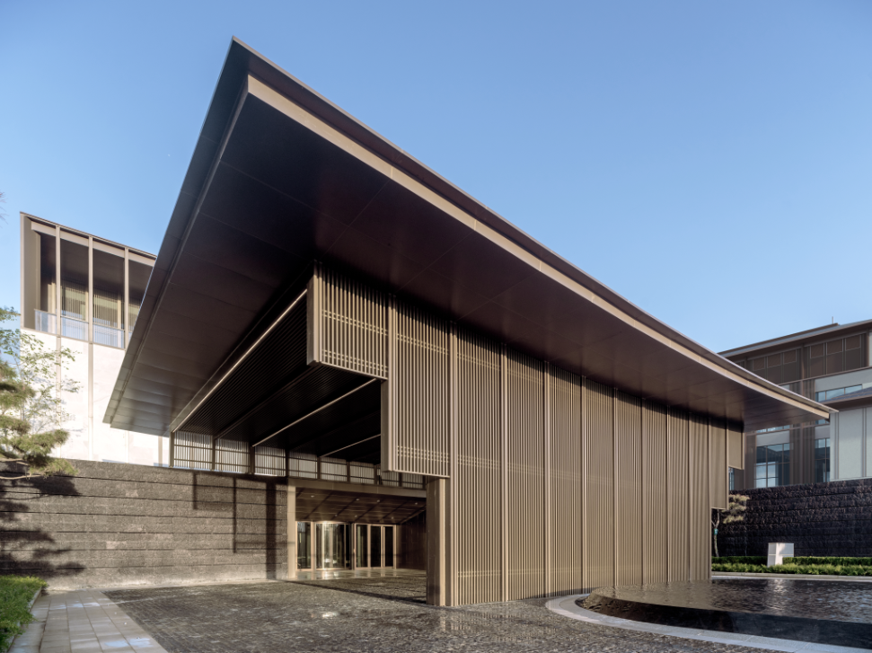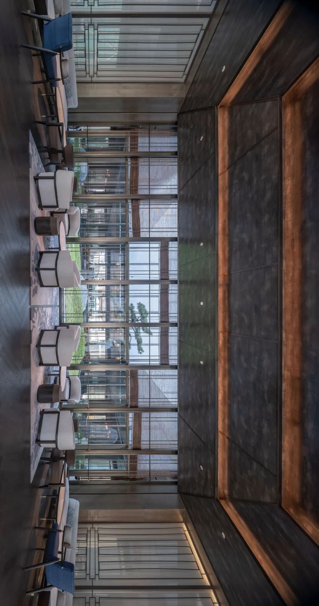 细节处理上,将极富东方特征的肌理,用作建筑的“表皮”使建筑立面更具特征。同时创造出朦胧的观景体验,更符合东方人的园林哲学。大堂迎面的景观庭院更富有禅意,中轴线的空间序列由此展开。