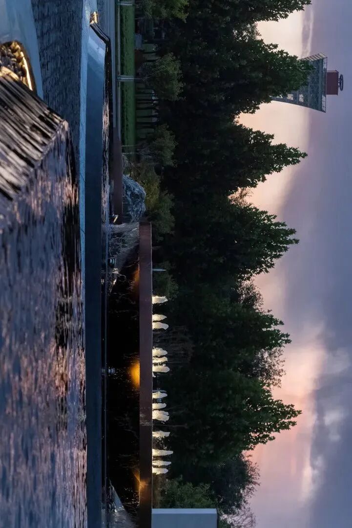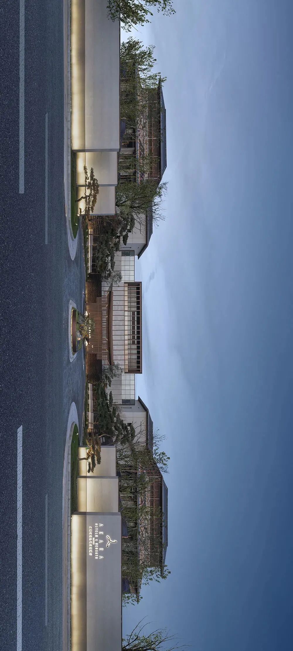 在策划上尝试以现代的方式去诠释中式经典的美学认知。不同于符号化的“仿古”,酒店延续宫殿布局前阙后御道的空间逻辑,打造水之以北为市,水之以南为宫,轴线十字中阙的场地空间,营造“北街生活休闲墅,中轴度假生活宫,南里私享生活院”的景观空间,尝试重现具有文化底蕴的哲思场景,寻找中式内核的空间美学。