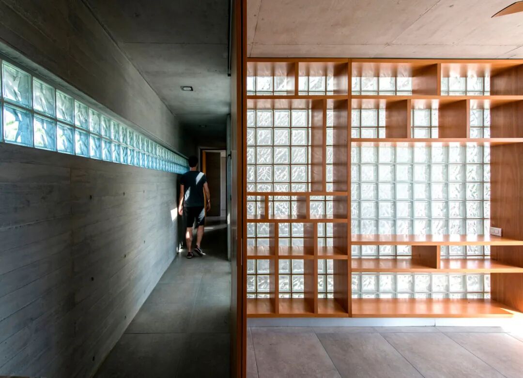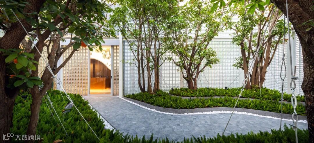 以纯实心玻璃砖构筑墙体,从外相视,光影变幻,恍若梦境,模糊居所与城市的界限,亦阻隔了外界的喧嚣,庭院内若隐若现的风景透射而出,隐而不逸、藏而不失。