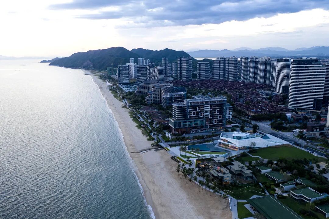 位于南太平洋外海广东汕尾市的金町湾,借助得天独厚的山海风光,优质的沙滩以及相对成熟的配套设施,每年都会吸引大量来自粤港澳的游客前来度假观光。七公里的海岸风光带中,五星级酒店、度假公寓、网红礼堂、集装箱餐厅等等,组成了滨海的建筑图景,随处可见游客帆船出海、露营野餐、逐戏沙滩、拍照打卡。