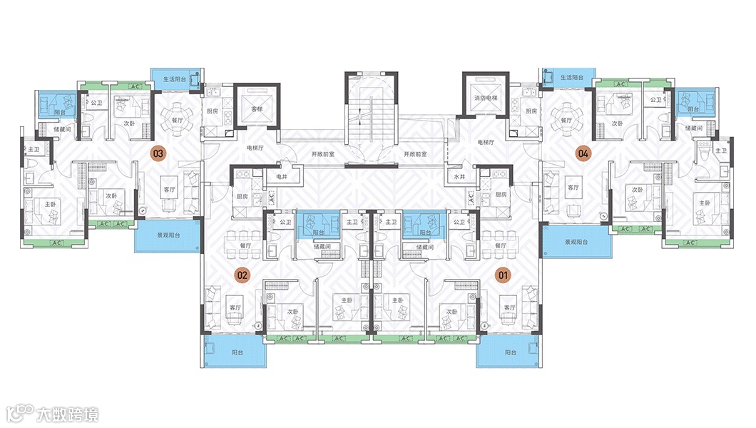 天津保利云禧所有高层户型,均实现了三开间朝南,这也意味着更好的采光和通风。