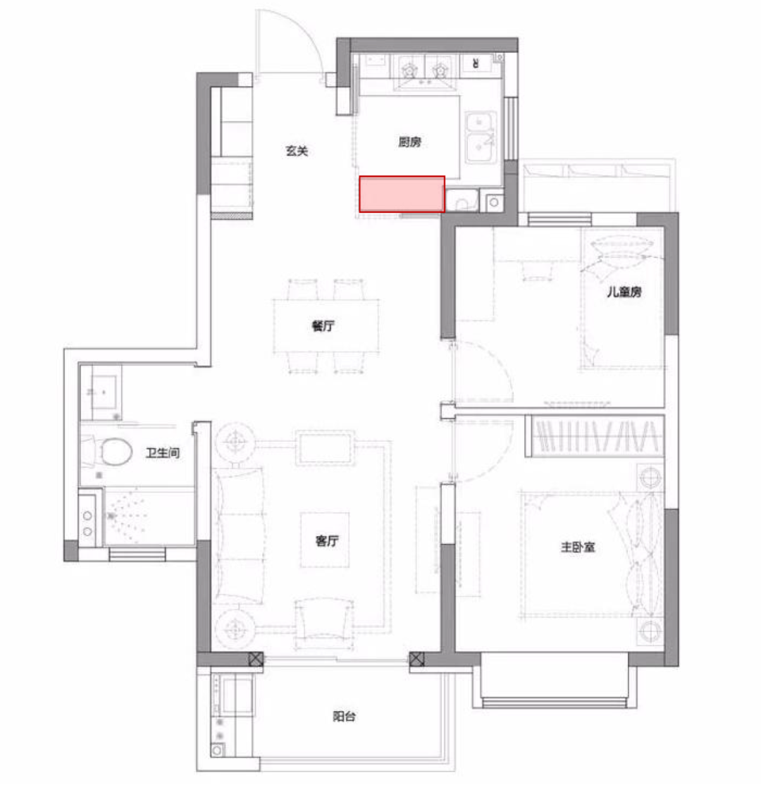 同样我们来看92平米的户型,从过去的封闭式厨房调整为打开式的空间。