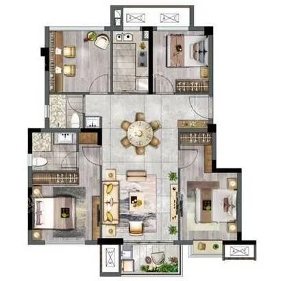 三室设计,动静分离,生活功能区分布在西侧,卧室统一排布在东边。无论是两口子还是有孩子的家庭,都妥妥的够用。这样的房子,未来流入二手房市场,也是永恒的“硬通货”。