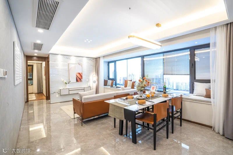 100平米以内户型,做出140平米的客餐厅空间十分难得。