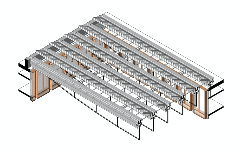 屋顶一共有7个区域的玻璃采光顶,投影总面积约1.7万平米,形成巨大的玻璃采光面积。玻璃采光顶顶部设有融雪系统,底部设有电动遮阳帘系统。