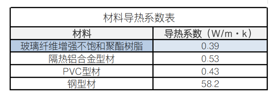 玻璃纤维增强不饱和聚酯树脂拥有很低的导热系数,仅为0.39 W/m•k,是优良的绝热材料。